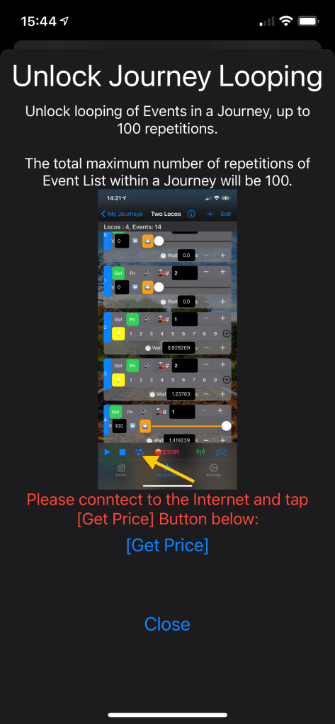 Here you can purchase extra features to the LocoPlay app and check if they have been purchased already and restore purcheses. You may also send a tip if you like my LocoPlay app This will heo me to maintain my Apple account. To purchase an item you must be connecter to the Internet. It means you need to switch your WiFi to the one having access to the Internet or use your mobile data. If you wish to unlock a feature simply tap the switch button.