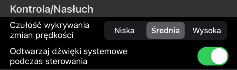 - Czułość wykrywania zmiany prędkości — podczas nagrywania Podróży in Centrum Kontroli i Sterowania, przesuwasz wskaźnik prędkości, aby zwiększyć lub zmniejszyć prędkość pociągu. Czułość oznacza, jak bardzo prędkość powinna się zmienić, od ostatnio zarejestrowanej wartości, aby została zarejestrowana jako Zdarzenie w Podróży. To samo dotyczy nasłuchu nadchodzących zmian prędkości z Z21 wysyłanych przez inny kontroler dla lokomotyw w trybie Nasłuchu.