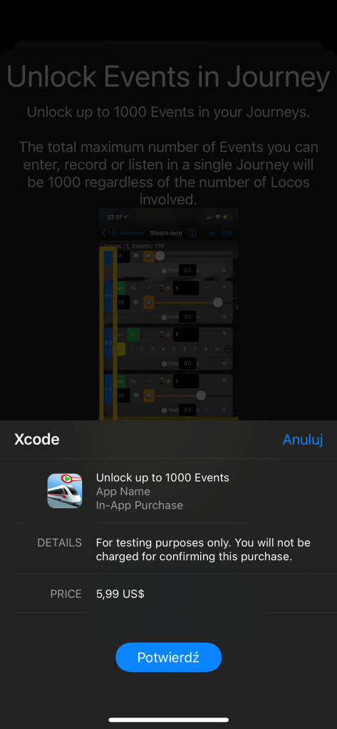 Pojawi się okno zakupu w aplikacji z opisem funkcjonalności. Dotknij obrazka aby go powiększyć.