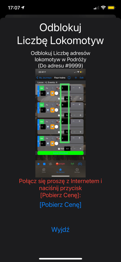 - Odblokuj Adresy Lokomotyw – Początkowo możesz użyć do 2 adresów lokomotyw w jednej podróży. Np. #1 i #2 lub #10 i #99, o ile wśród Zdarzeń są używane tylko 2 adresy. Po odblokowaniu możesz użyć więcej niż 2 adresów na Podróż, nawet każde Zdarzenie może mieć inny adres.